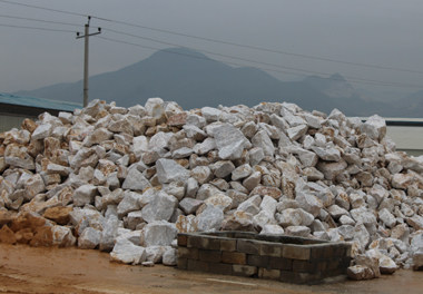 圖6 從礦山運來的大理石,堆放在料場,以備使用。我們明顯會發現石頭外表有黃泥等贓物,怎么辦呢,稍后請看圖8.