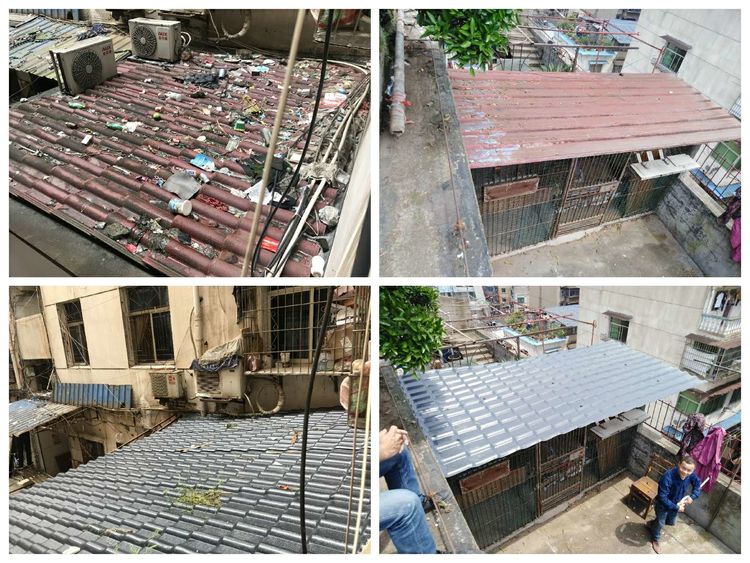 西市街道“雙創”鋼棚整治工作換合成樹脂瓦