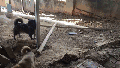 阿姨打開大門,狗狗們都興奮得狂吠,將她圍成幾圈。幾天的連續降雨讓它們身上都濕噠噠的,下半身滾滿了泥土。然而,它們并不知道,這連續的降雨究竟給它們的家造成了什么麻煩,還是興高采烈地玩鬧著。