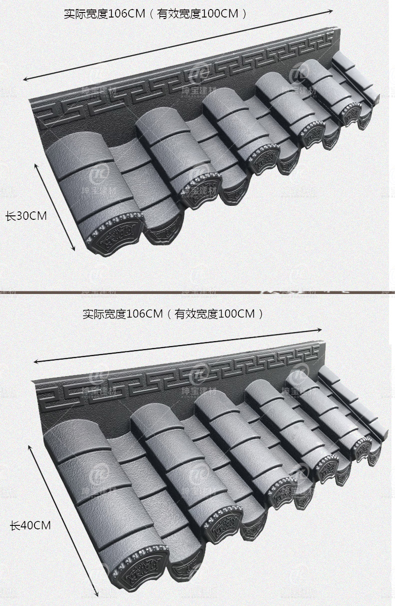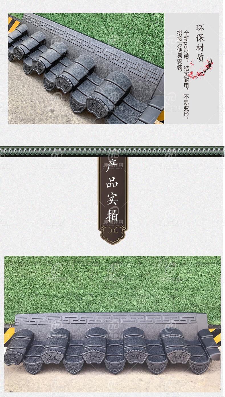 用途:徽派建筑裝飾(室內外皆可用)圍墻、門頭、徽派古建筑、徽派小瓦