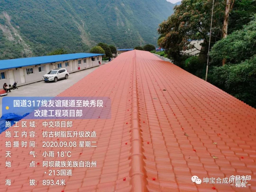 中交路橋集團國道317線隧道至映秀段改建工程項目部屋頂加蓋樹脂瓦工程,接下來看樹脂瓦加蓋屋面的部分效果!