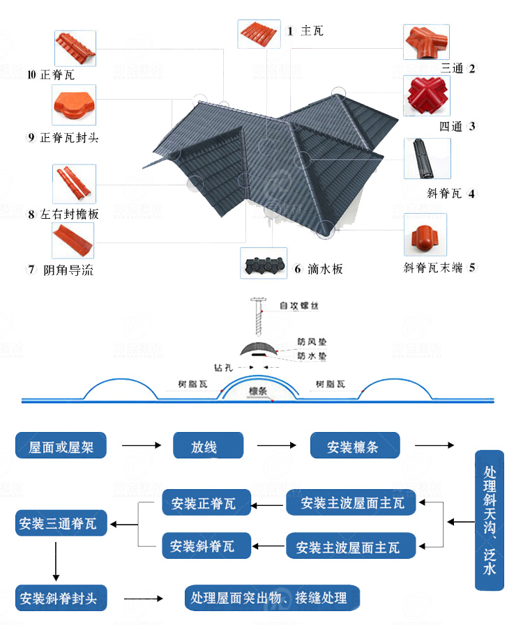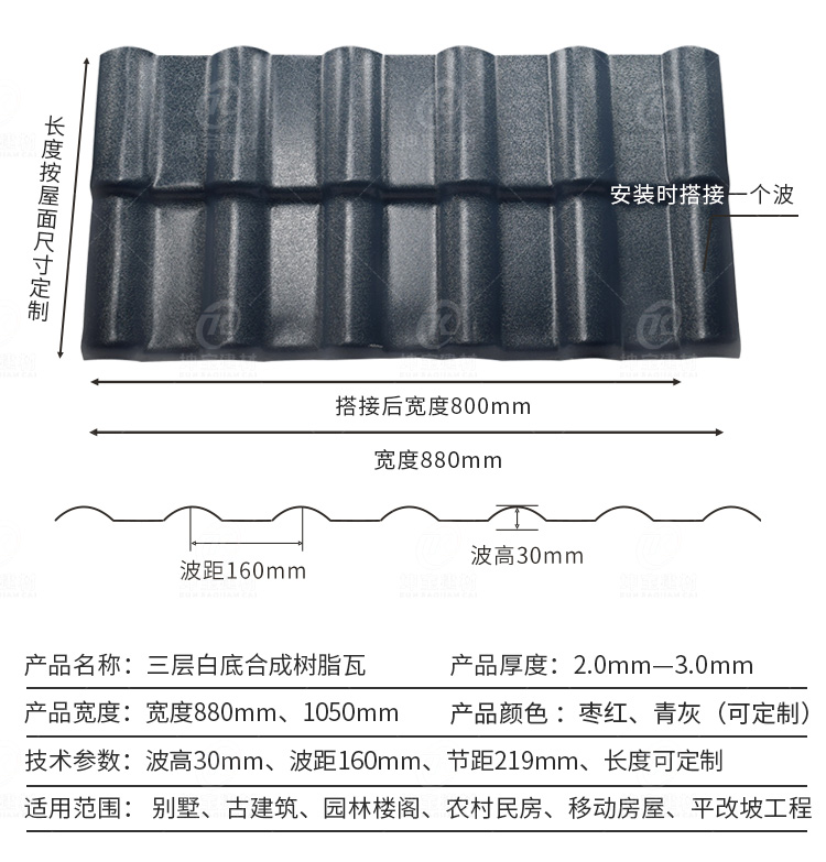 規(guī)格:880型白底三層樹(shù)脂瓦